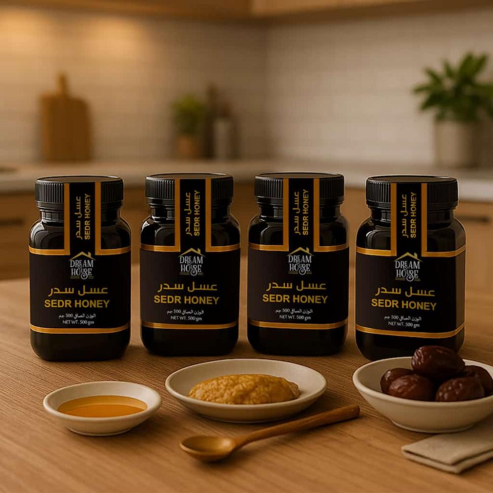 1. يتوفر عسل سدر دريم هاوس في 4 عبوات فاخرة، سعة كل عبوة 500 جرام.